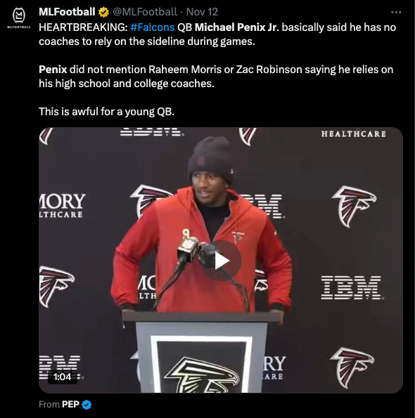 UPDATE (Nov 14) ESPN Falcons beat writer Marc Raimondi spoke to Penix Jr.’s coaches on the controversy.